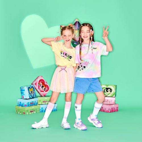 이번 컬렉션은 파워퍼프걸을 상징하는 하트 그래픽 등 아기자기한 디자인에 블로섬, 버블, 버터컵 캐릭터 프린팅을 더해 사랑스러우면서도 키치한 무드를 완성한 것이 특징이다. 레인보우, 핑크, 퍼플 등 아이들이 좋아하는 러블리한 색감을 포인트로 최근 패션 트렌드인 발레코어 무드를 반영해 봄여름에 입기 좋은 반팔 티셔츠부터 신발, 가방, 양말 등 다양한 아이템을 선보인다.