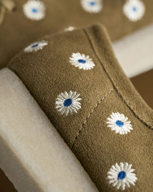 데이지 컬렉션은 클래식한 왈라비 라인에 화사한 컬러감의 스웨이드 바디와 데이지 꽃 자수를 가미해 페미닌한 무드와 동시에 유니크한 매력이 특징이며 안감은 터치감이 부드러운 마이크로 스웨이드를 사용해 편안한 착용감을 느낄 수 있다.