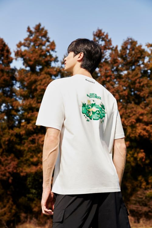 제주 해안가에 버려진 폐플라스틱을 원료로 한 ‘제주 리사이클 에디션’ 티셔츠다. 자원이 일회성으로 소모되지 않고 의류로 재탄생되는 자원순환의 의미를 담았다.