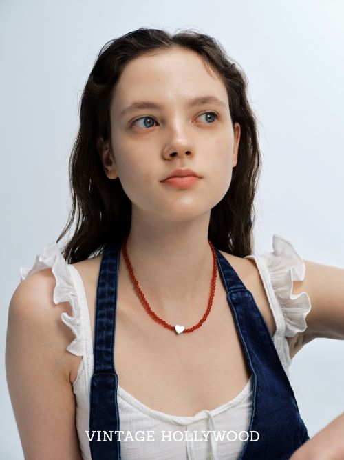 첫 번째로 이번 봄 2차 러브캐쳐 컬렉션의 메인 아이템인 하트 목걸이는 반투명한 레드 컬러의 원석 색감과 펜던트의 반짝임이 어우려져 심플한 룩에 스타일링 포인트를 줄수 있으며 하트 모티브의 펜던트는 양면의 디자인이 달라 투웨이로 연출 가능한 것이 특징이다.