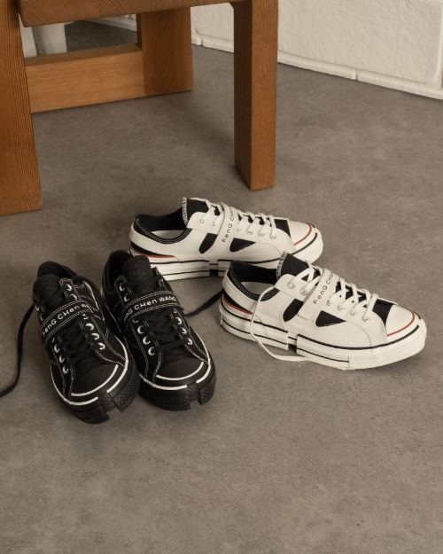 ‘컨버스 X 펑첸왕’이 선보인 두 가지 스니커즈를 하나로 결합한 투인원 척 70 오리지널 디자인은 뉴욕과 상하이에서 열린 펑첸왕의 My Half 컬렉션에서 처음 공개된 후 2019년 처음 출시되었으며 지난 2월 새로운 디자인으로 많은 관심을 받았다. 이번 협업은 투인원 척 70을 또 다른 실루엣의 로우탑 에디션으로 재해석하여 선보인다.
