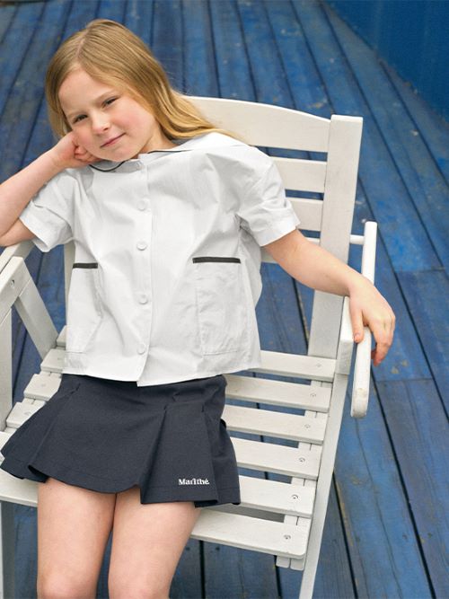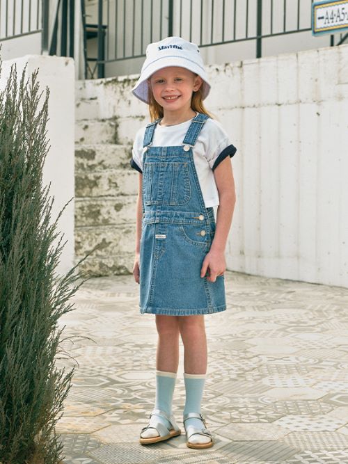 ‘마리떼 프랑소와 저버’의 헤리티지인 데님 복종도 강화되었다 어덜트 라인과 동일한 디자인으로 공개된 버뮤다 데님 팬츠와 오버롤 데님 스커트, 데님 플리츠스커트에도 Fly Tag, Leather Label 등의 디테일을 그대로 담아냄으로써 키즈 라인에서도 데님 강자의 자리를 굳건히 지킬 예정이다.
