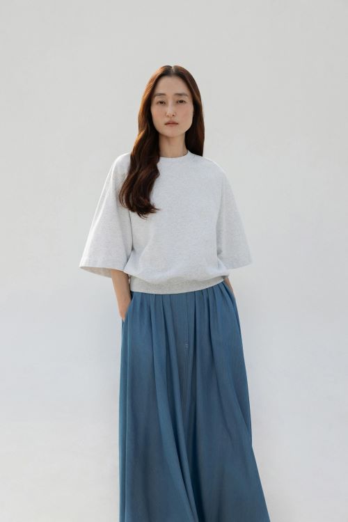 ‘플리티드 데님 플레어 스커트’는 이탈리아 알비아테 사의 100% 리오셀 소재를 사용한 제품이다. 청량한 색감과 시원한 소재를 사용해 더운 여름 간편하게 착용할 수 있다.