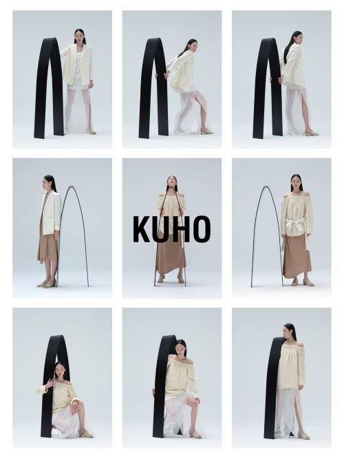 특히 ‘아키텍추럴 타이폴로지 오브 구호(ARCHITECTURAL TYPOLOGY of KUHO)’를 여름 캠페인 테마로 했다. 구부러지고 접혀지는 오브제, 모델의 포즈가 하나돼 보여지는 선과 면의 유연한 조합을 다양한 스타일링 변주로 컬렉션에 담았다. 이번 캠페인에는 ‘사진을 아트 영역으로 확장했다’는 평을 받는 한국 현대 사진의 개척자 ‘구본창’ 작가와 함께 했다.