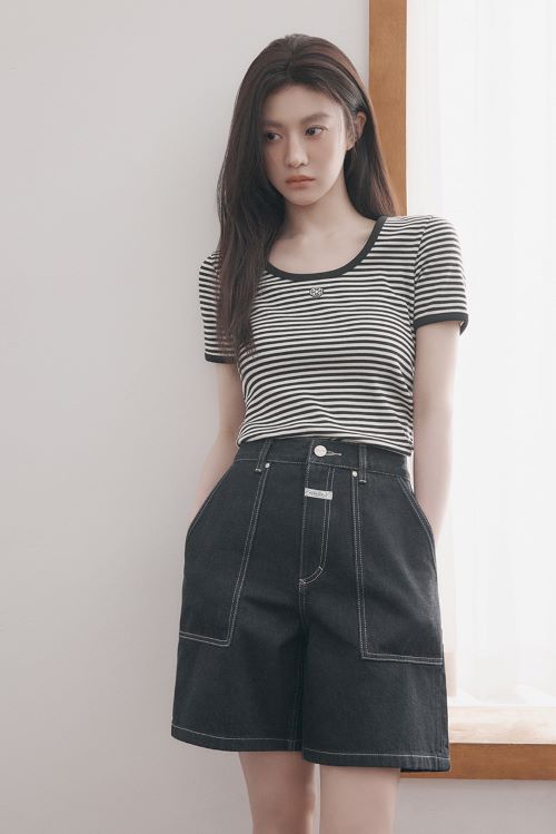 또 새로운 심볼 로고 자수 디테일에 U 네크라인이 돋보이는 슬림핏 스트라이프 티셔츠로 여성스러우면서도 캐주얼한 무드를 제안하기도 했다.