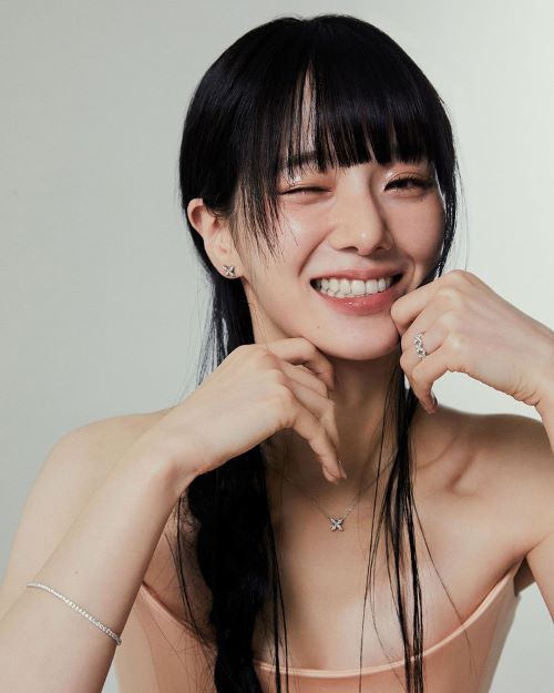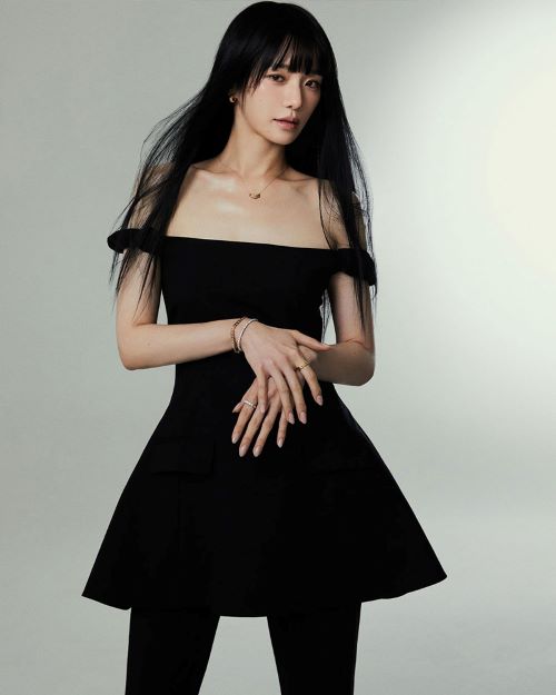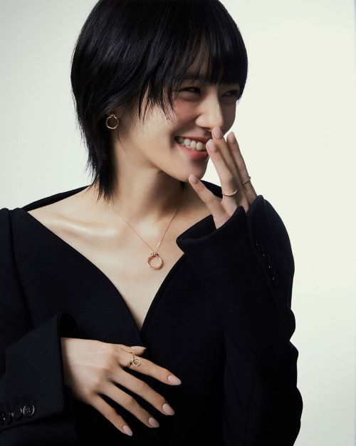 화보 속 박규영은 블랙 브이넥 톱에 ‘오픈유어하트(Open Your Heart)’ 제품을 매치하여 사랑스러운 매력을 뽐냈다. ‘오픈유어하트(Open Your Heart)’ 제품은 창덕궁 연경당의 한국 전통 문고리에서 영감을 받은 디자인으로 사랑하는 이의 마음의 문을 연다는 의미를 담았다.