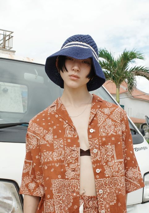 ‘가니’는 다채로운 색상 블록이 특징인 크로셰 버킷햇을 선보였다. 유니크한 색상 조합과 성긴 짜임을 적용해 귀엽고 시원한 무드를 연출했다. 종이 섬유 100% 원단으로 제작된 스트로(Straw, 밀짚) 버킷햇도 내놨다. 브라운 색상의 자수 로고를 포인트로 해 여름철 캐주얼룩에 센스를 더했다.