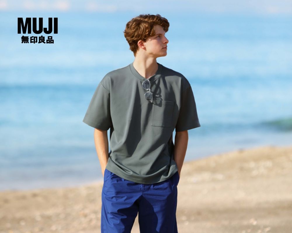 무인양품이 패션 의류 남성 시원한 UV컷 와이드 반소매 티셔츠를 선보였다.