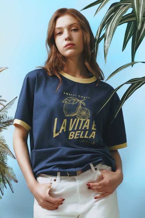 이번 시즌 선보이는 ‘LA VITA É BELLA’는 이탈리아어로 ‘인생은 아름다워’를 뜻하는 말로 아름다운 아말피 해안의 멋진 풍경, 지중해의 바람과 따스한 태양을 담은 티셔츠 라인이다. 특히 소매와 밑단, 넥 라인에 컬러 포인트를 주어 여름 룩에 경쾌함을 더한 것이 눈에 띈다.
