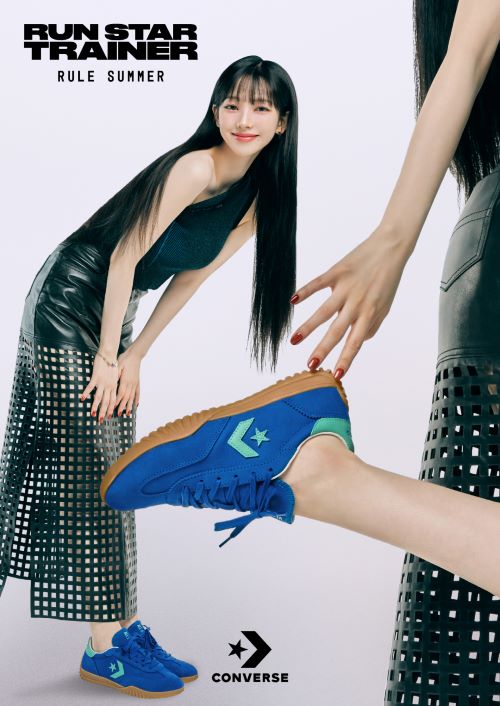 메인 화보 속 카리나가 착용한 런스타 트레이너는 스포티하면서도 클래식한 스타 쉐브론 라인의 새로운 실루엣 스니커즈이다. 나일론 소재 어퍼에 스웨이드 오버레이, 가죽 포인트 디테일, 다이아몬드 텍스처와 핀스트라이프가 강조된 고무폭싱이 적용되어 세련된 디테일이 돋보인다.
