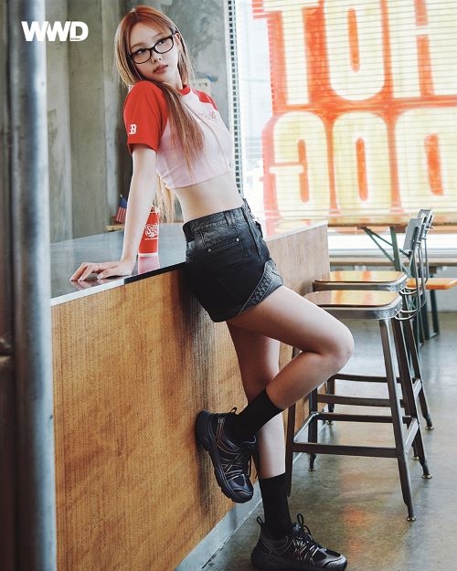 또 다른 화보 속 나연은 배색 컬러감과 여유있는 크롭 기장이 돋보이는 바시티 라글란 크롭 티셔츠를 완벽하게 소화해 통통 튀는 매력을 발산했다. 또한 이번 시즌 인기 러닝화 에이스러너를 매치해 나연만의 무드가 담긴 힙한 스포티룩으로 재탄생시켰다.
