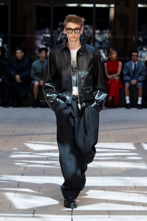 남성 컬렉션의 경우 아베 치토세는 제임스 딘의 해링턴 재킷을 바탕으로 사카이의 형태를 덧붙여 빈티지 카와 꽃 자수 프린트의 매력을 더했다.