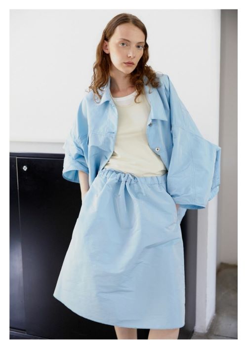특히 청량한 베이비블루 컬러의 포플린 블라우스, 드레스 등 격식 있는 룩과 어울리는 고급스러운 아이템부터 코튼 캔버스 오버셔츠 등 캐주얼한 데일리 아이템까지 폭 넓은 라인업이 두루 주목을 받았다.