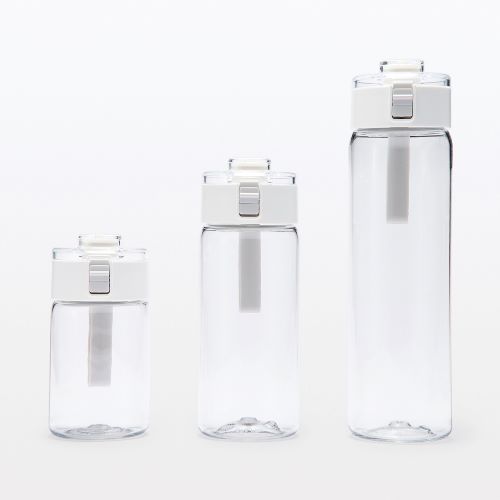 한편 또 다른 냉수 전용 물통 시리즈로는 ‘클리어 머그 보틀’이 있다. 실리콘 스트랩이 있어 휴대가 간편하며, 원터치 푸시 버튼이 있어 한 손으로 뚜껑을 열고 음용할 수 있다. 또한 내용물이 새지 않도록 내부에 실리콘 캡을 더해 가방 속에 휴대할 때도 조금 더 안심할 수 있다는 것이 장점이다. 무인양품의 클리어 머그 보틀 시리즈는 350ml 기준 12,900원에 구매할 수 있다.