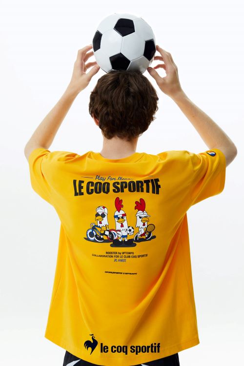 이에 ‘르꼬끄’는 업템포 작가 만의 창의적인 시각으로 브랜드가 지닌 스포츠 헤리티지를 재해석해 재미있는 상상력을 불러일으키는 캐릭터 티셔츠를 완성했다. 작가 특유의 유쾌한 감성으로 르꼬끄 심볼 수탉을 캐릭터화했고 그 동안 ‘르꼬끄’가 주력해온 테니스, 축구, 싸이클을 모티브로 스토리를 입혔다.