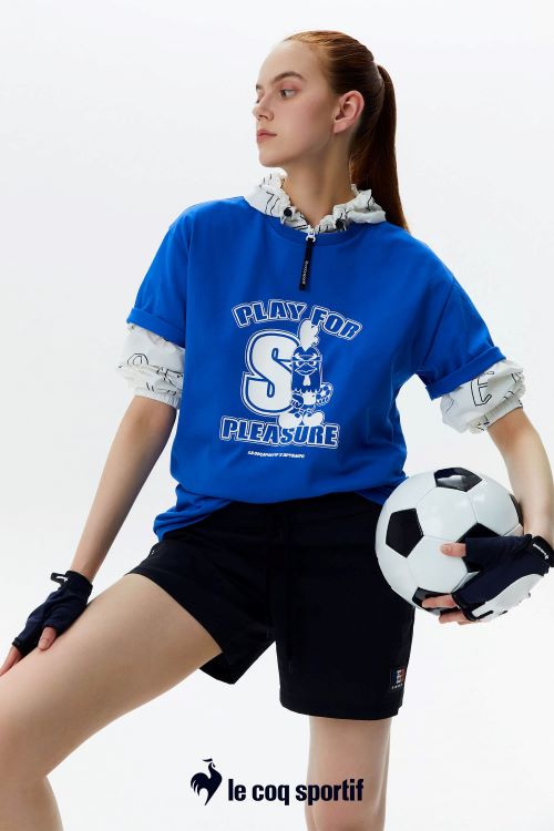 ‘르꼬끄X업템포’ 협업 티셔츠에는 전 제품 공통으로 수탉 캐릭터가 테니스, 축구, 싸이클을 즐기는 아트워크가 적용됐다. 진지하다 못해 무표정의 수탉 캐릭터가 팔색조 매력을 뽐내며 웃음을 자아낸다. ‘르꼬끄’의 핵심 컬러인 블루, 레드, 화이트가 포인트로 사용되었고 주요 메시지 ‘Play for Pleasure’ 레터링이 다양한 크기, 서체로 활용됐다. 컬러는 블랙과 화이트 등부터 레드, 옐로우, 블루 등 원색까지 다채롭다.