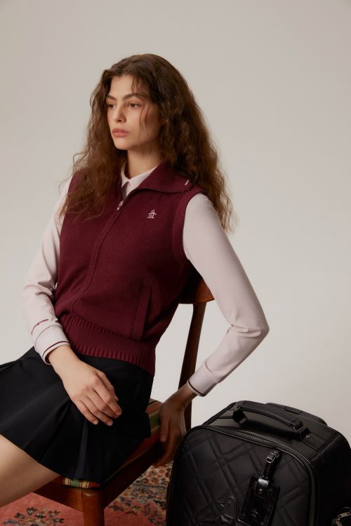 브이넥 경량 니트 베스트는 숄 같이 넓게 퍼지는 카라 디자인이 개성을 더하고 카라 뒤편에는 레터링 로고로 포인트를 줬다. 도톰하고 폭신한 촉감이 특징인 부클 원사를 사용했고, 경량이라 착용감이 편하다. 원사 특성 상, 그윽하고 깊은 컬러감을 자아내 초가을까지 멋스럽게 착용할 수 있다. 컬러는 와인, 블랙 2가지.