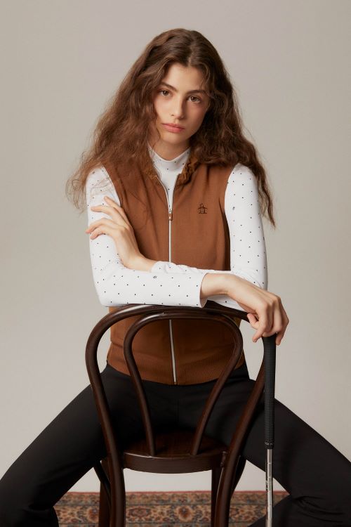 주력제품 이지핏 레터링 반팔 니트는 면 폴리 혼방 소재라 기존 니트처럼 무겁지 않고 가볍다. 땀 배출과 빠른 건조를 돕는 흡한속건 기능을 갖춰, 라운드내내 쾌적함을 선사한다. 소매는 너무 짧지 않은 5부 기장이라 이너웨어로 티셔츠를 겹쳐 입기 좋다. 소매와 허리단에 통일된 스트라이프 컬러를 배색해 손 쉬운 스타일링이 가능하다. 브랜드 심볼 펭귄과 레터링 로고로 포인트를 줬다. 컬러는 블랙, 핑크 2가지.