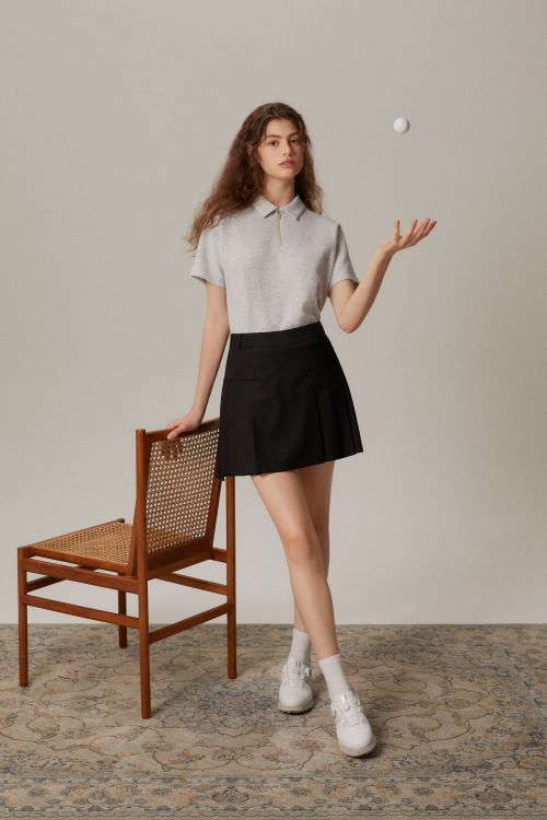 이지핏 자카드 반팔 티셔츠는 반집업 형태의 스포티한 디자인이 특징이다. 이태리 수입원단을 사용해 피부에 닿는 촉감이 부드럽고, 입체감 있는 재단으로 체형을 보정해준다. 풀 스윙 등 활동성을 고려한 라그랑 소매 디자인으로 움직임이 자유롭고, 어깨와 등판 절개선이 개성을 더한다. 함께 입는 아이템에 따라 필드 룩뿐 아니라 일상에서도 활용도 높다. 광택이 살짝 도는 글리터 소재라 빛 반사에 따라 고급스러움을 연출한다. 컬러는 라이트 그레이 1가지.