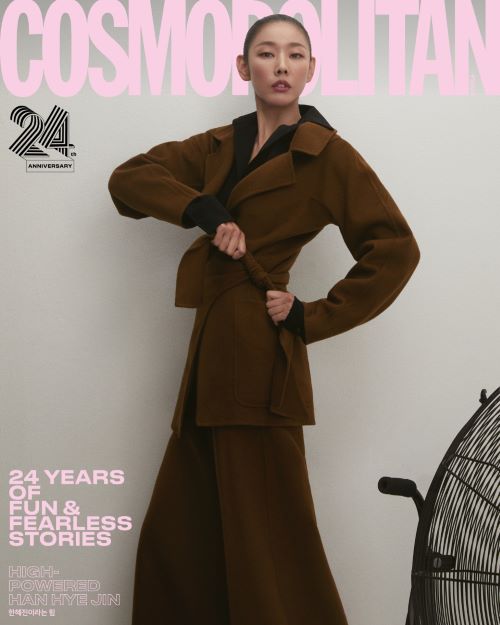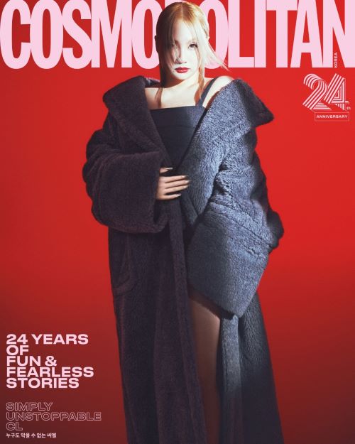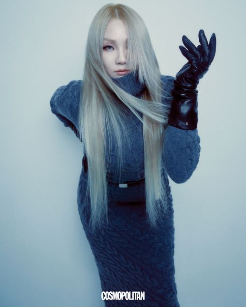 이번 ‘막스마라’ 컬렉션은 벨 에포크 시대 여성들을 포착한 거친 질감의 흑백 사진과 같이 스모키 그레이, 딥 잉크 네이비 등의 컬러 팔레트가 사용되었는데 씨엘은 이번 화보에서 ‘막스마라’의 테디베어 코트와 그레이 톤의 롱 니트 원피스로 카리스마 넘치는 룩을 완성했다.