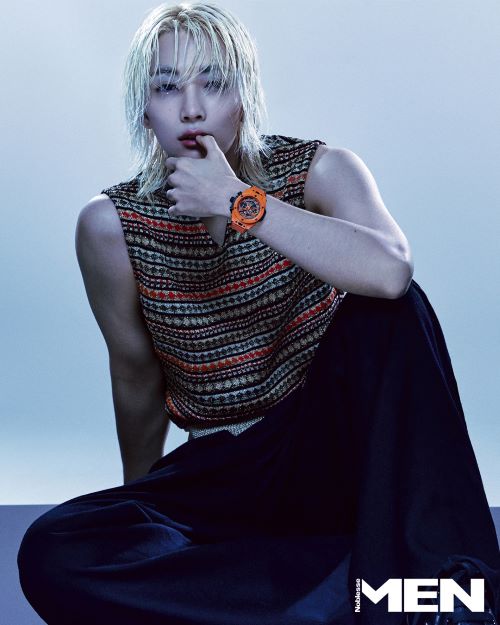 세븐틴 정한과 커버를 장식한 빅뱅 유니코 오렌지 세라믹은 ‘위블로’가 워치메이커 최초로 선명한 오렌지 컬러의 세라믹을 선보인 제품이다. 화려한 금발로 남다른 비주얼을 자랑해온 정한은 이번 화보에서 다채로운 컬러의 의상까지 완벽하게 소화하며 패션 아이콘다운 독보적인 카리스마를 뽐냈다.