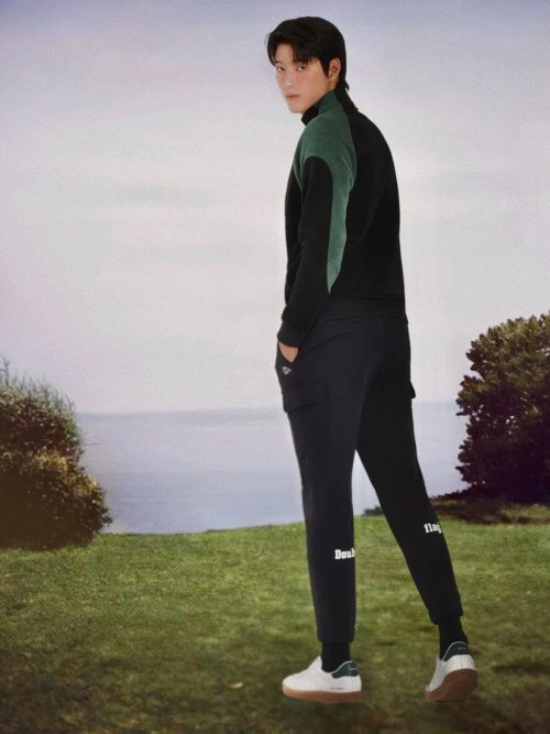 골프와 삶의 재미를 동시에 추구하는 ‘더블플래그’의 방향성도 고급스럽게 담아냈다. 브랜드 주력 아이템으로 자리잡은 조거팬츠, 맨투맨 티셔츠에 러블리하면서 위트 있는 그래픽을 더하되 차분한 색상과 세미 오버 핏을 적용해 세련된 무드를 완성했다.