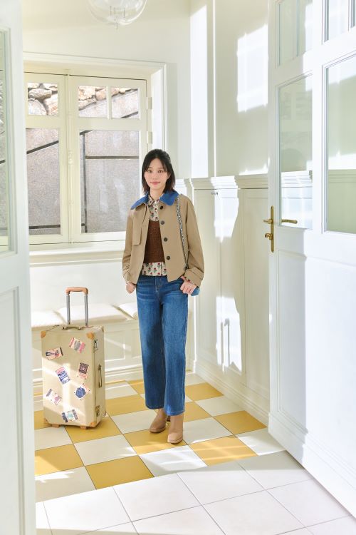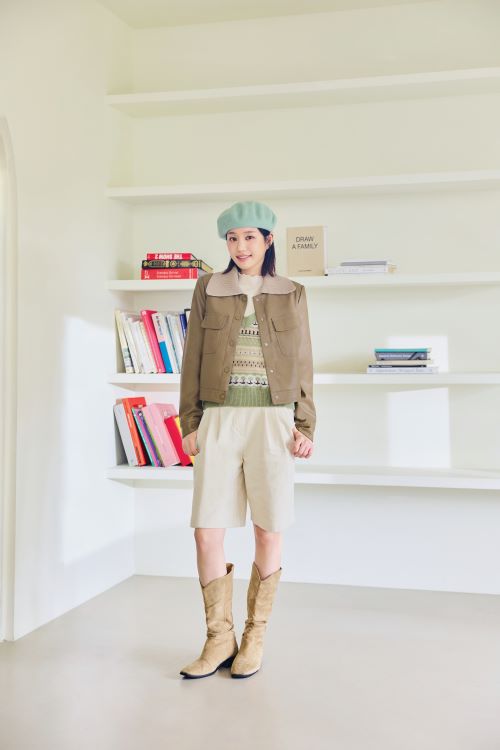 이너로는 다채로운 컬러 배색 니트, 와이드 슬랙스를 매치해 데일리 뿐만 아니라 생동감 있는 오피스 캐주얼 스타일링을 완성했다.
