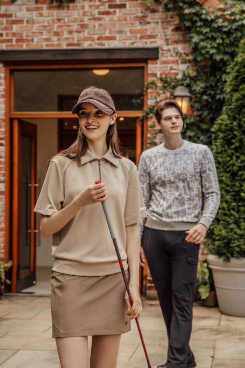 ‘컬렉션’과 함께 공개한 화보에서는 차분한 뉴트럴 톤의 컬러를 사용해 계절감을 담아내는 동시에 고급스럽고 세련된 무드가 돋보인다. 아직 더위가 가시지 않은 날씨에 입기 좋은 반집업 스타일 티셔츠와 베이직 큐롯, 썬 바이저 등 프리폴 아이템부터 베스트 레이어드 티셔츠, 가디건, 풀집업 스웨터, 레더 버뮤다 하프 팬츠 등 간절기 아이템으로 다양하게 구성해 풍부한 골프웨어 스타일링을 선보였다.