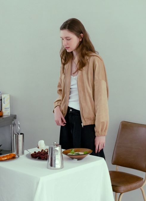 ‘코텔로’는 라떼를 연상케 하는 베이지 컬러의 스웨이드 재킷을 활용한 스타일링으로 따스하고 서정적인 무드를 표현했다. 또 빈티지한 케이블 짜임의 니트 베스트와 생지 데님 워싱에 트위드 터치 기법이 적용된 데님 팬츠를 함께 매치해 경쾌한 매력을 더했다.