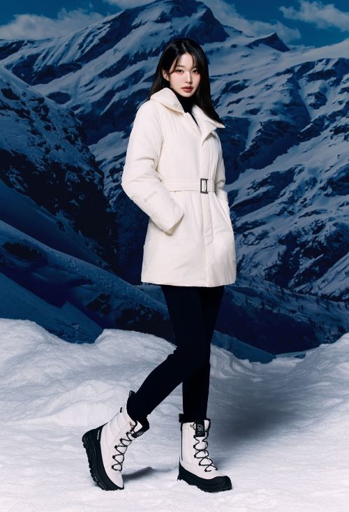장원영은 코트 스타일의 슬림한 핏을 갖춘 ‘캐시미어 코트 롱 다운’을 멋스럽게 소화해 일상과 아웃도어의 경계를 넘나드는 패션을 선보이는가 하면 설산을 배경으로 미들 기장의 ‘캐시미어 코트 다운’과 함께 스투키 부츠를 매치해 우아한 겨울 아웃도어 스타일을 선보였다.