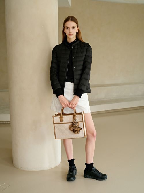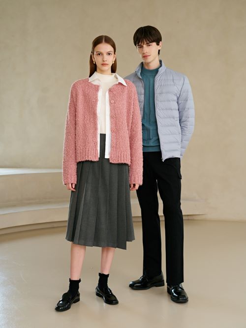 본격적인 가을 시즌을 맞아 컬렉션 중 코스모스 플라워 패턴이나 잔꽃 프린트를 활용한 이너웨어 및 아우터가 눈길을 끌며 상하의 셋업 제품들도 가을 무드톤을 적용시켜 포근하고 따스한 색감이 돋보인다.
