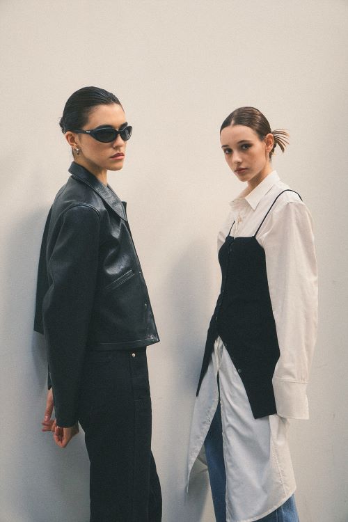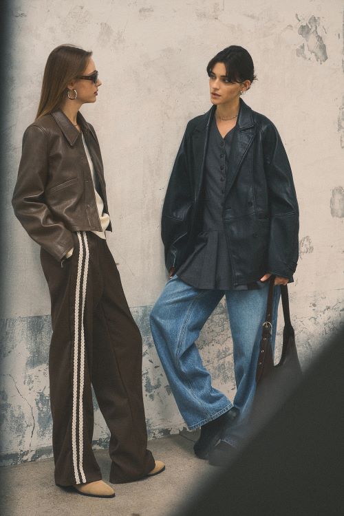 에코 레더에 단백질 코팅을 더해 고급스럽고 빈티지하게 연출한 ‘더블 레더 카 코트’는 미디 기장으로 다양한 아이템과 스타일링하기 좋으며 절개 라인과 비스코스 안감, 소뿔 단추 등의 디테일로 완성도를 높였다.