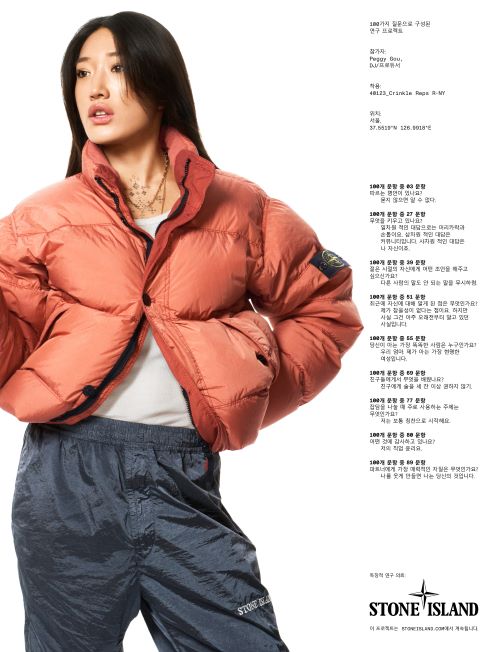 국내에서는 DJ이자 프로듀서로 활동 중인 페기 구가 ‘스톤 아일랜드’ 캠페인에 참여한 최초의 여성으로 커뮤니티 멤버에 등장해 화제를 모았다.