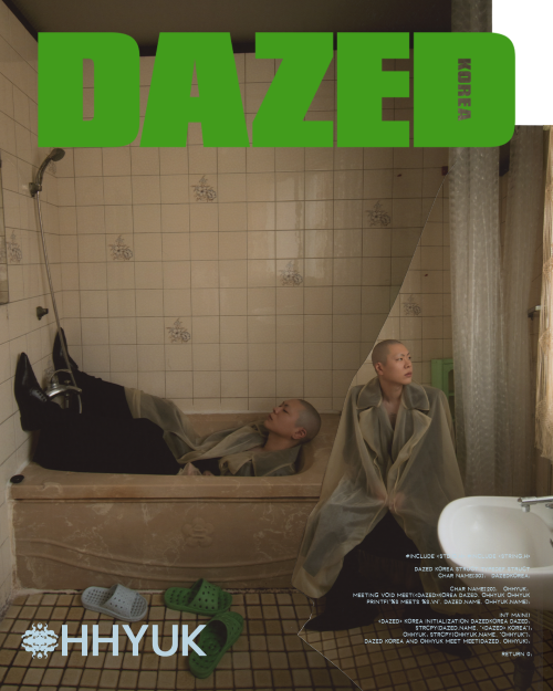 오래된 사무실을 배경으로 촬영된 디지털 커버 컷에서는 시어링 트리밍 디테일의 블랙 컬러 코튼 레인코트, 소버린 스컬 네크리스 그리고 슬링 백을 크로스 바디로 스타일링하여 이미지를 선보이는 한편 나일론 메시로 감싸진 블랙 코튼 트렌치코트를 착용한 컷에서는 욕조 배경과 함께 오혁 특유의 시크함이 만들어내는 생경한 분위기를 느낄 수 있다.