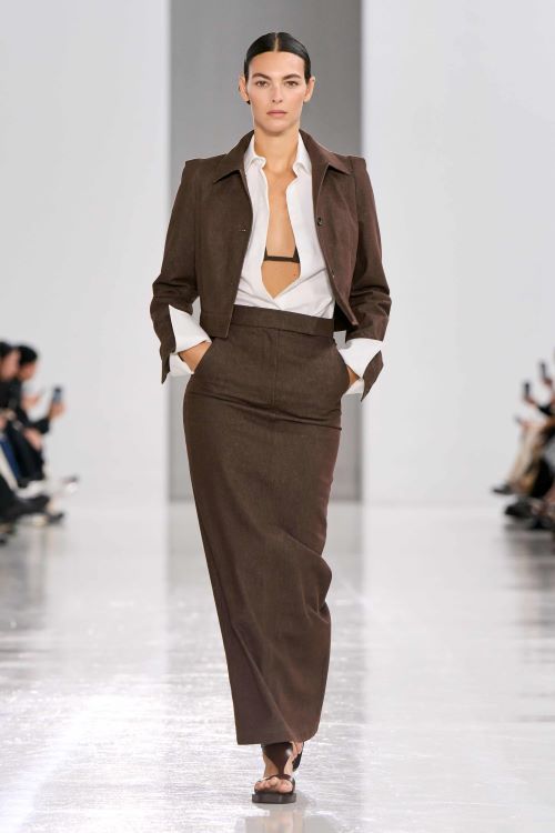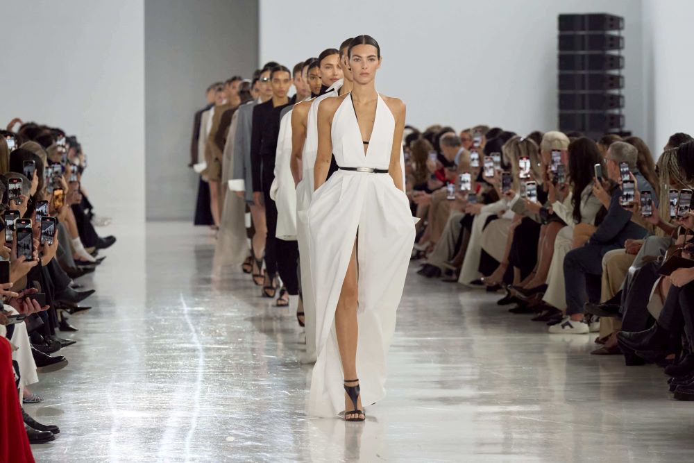 이번 ‘막스마라’ 2025 봄여름 컬렉션에는 기하학적 정밀함과 조형성을 바탕으로 공학적으로 완벽하게 설계된 선형의 원단들이 등장한다. 개버딘, 드릴, 하이엔드 데님뿐만 아니라 무작위로 잡힌 주름이 교차하는 실크 소재가 함께 어우러진다. 또한 실험실의 유리병을 연상시키는 크리스털 화이트, 구리 산화물처럼 짙은 블랙, 델피니움 블루, 질산은의 실버 컬러 등 다양한 색조를 활용한 이번 컬렉션의 팔레트는 쿨하면서도 마법 같은 화학 반응을 의도하며 컬렉션 전반에 활기를 불어넣는다.