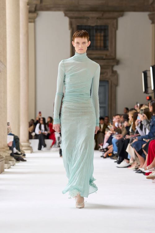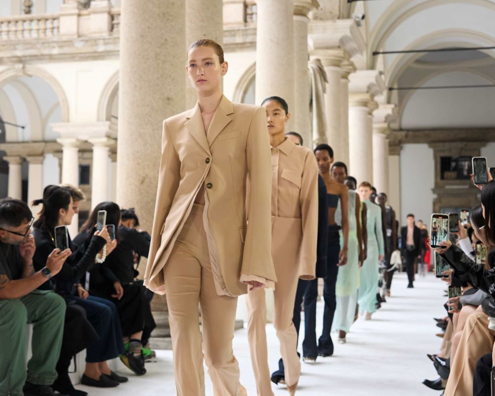 특히 이번 ‘스포트막스’ 런웨이 쇼는 브레라 미술관 아치형 알코브에서 열려 이탈리아 장인 정신의 풍부한 유산과 연결되며 독특한 울림을 전했다. 수세기의 예술 작품들로 가득한 이 공간은 하얀 런웨이와 대조를 이루며 맥시멀리즘과 미니멀리즘이 공존하는 ‘스포트막스’의 다채로운 내러티브를 강조한다. 단색의 미니멀한 실루엣에 아쿠아마린, 샌드, 시트린, 루비 등 빛 바랜 미네랄 톤의 컬러 팔레트가 더해져 신고전주의적 공간의 디테일을 더욱 돋보이게 했다.