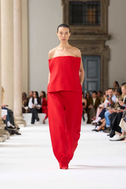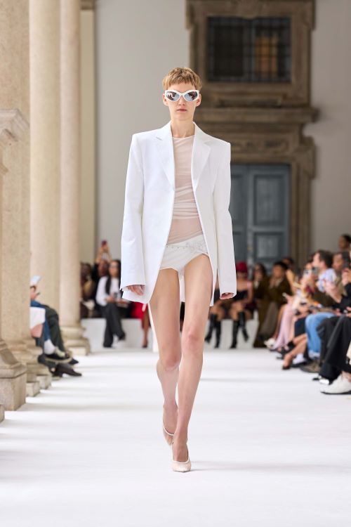 또한 구조적인 아우터웨어부터 데님 클래식, 레더 가운까지, 새로운 스포트막스 스타일의 핵심인 기술적인 진화를 바탕으로 구현된 가볍고 유연한 소재의 룩들도 선보였다. 깊게 파인 네크라인과 슬릿은 기하학적인 구조 속 강렬한 여성미를 드러내며, 컬렉션을 다양한 스타일로 조합할 수 있는 모듈의 가능성을 확장했다.