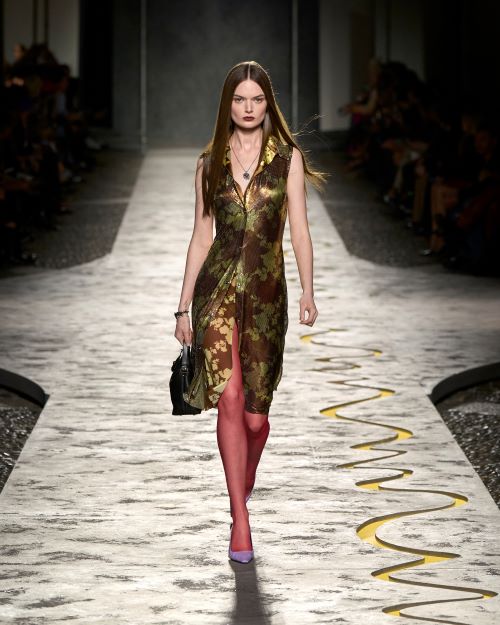 이번 컬렉션은 ‘베르사체’의 혁신적인 노하우를 통해 모티프를 변형하였다. 메탈 메시 소재 위에 프린트된 꽃과 파도 패턴은 하늘거리는 데이 드레스와 스커트에서 자연스럽게 어우러지며 실버&골드 조각들이 그려진 표면을 따라 파동처럼 흐른다. 미래적인 메시 소재를 활용한 최첨단 아틀리에 베르사체의 코르셋은 3D 프린팅된 재활용 나일론 폴리머를 사용해 갑옷같은 형태로 제작되었다.