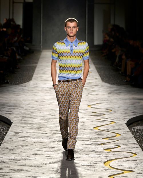 비즈니스, 캐주얼, 우아한 스타일부터 셔츠 드레스와 아도니스 벨트에 맞춰 커팅된 수영복을 변형한 셔츠에 이르기까지 베르사체의 셔츠에 대한 다양한 탐구가 컬렉션 전반에 스며들어 있다. 패턴과 색상으로 변화된 컬렉션의 형태는 기본적으로 편안함과 심플함을 유지한다. 여성 실루엣은 무릎 길이의 드레스와 스커트의 움직임을 담은 스포츠적인 A라인을 중심으로 구성되며 테일러링은 최소한의 곡선으로 커팅되었다.