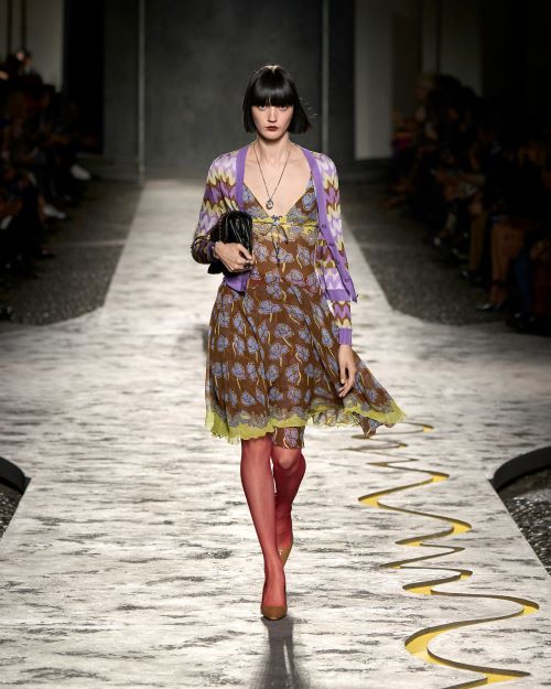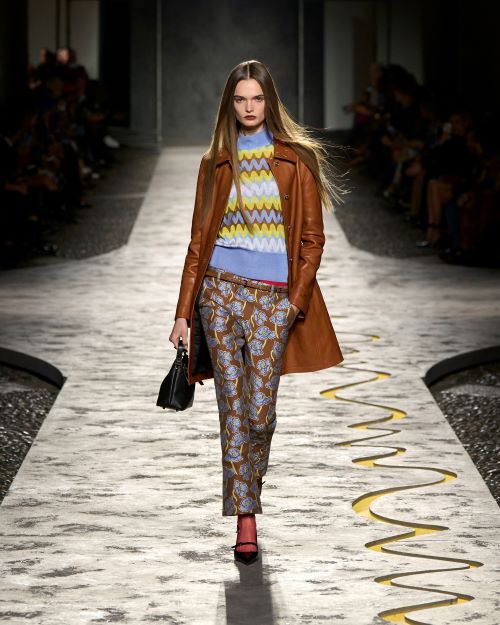 또한 컬러 팔레트는 양귀비 프린트에서도반향을 일으키고, 로맨틱한 파도 프린트는 부드러운 지그재그로 꽃의 흐름을 기분좋게 방해한다. 패턴의 감각적 과잉은 예술적이고 이국적이면서 하우스의 상징적인 바로코 프린트를 통해 재창조되었다. 이번 시즌의 ‘뉴 블랙’으로 베르사체가 제안한 브라운은 일종의 카모플라쥬 효과를 불러일으킨다.