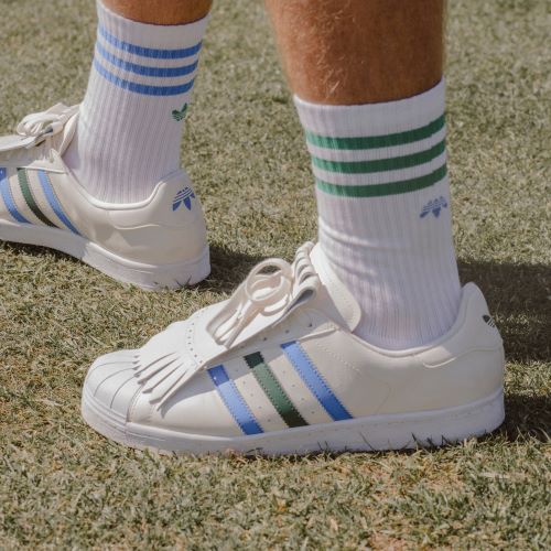 롤링 링스 컬렉션은 크루넥 윈드셔츠, 후드, 브이넥 베스트, 반필 및 긴팔 폴로, 모크넥 셔츠, 반바지와 치노팬츠 등으로 전개된다. 또한 익스클루시브 골프화로 선보이는 ‘슈퍼스타 골프’는 그린과 블루 디테일이 매력적이며 골프 코스에서 스타일과 퍼포먼스를 한 단계 더 끌어올린다.