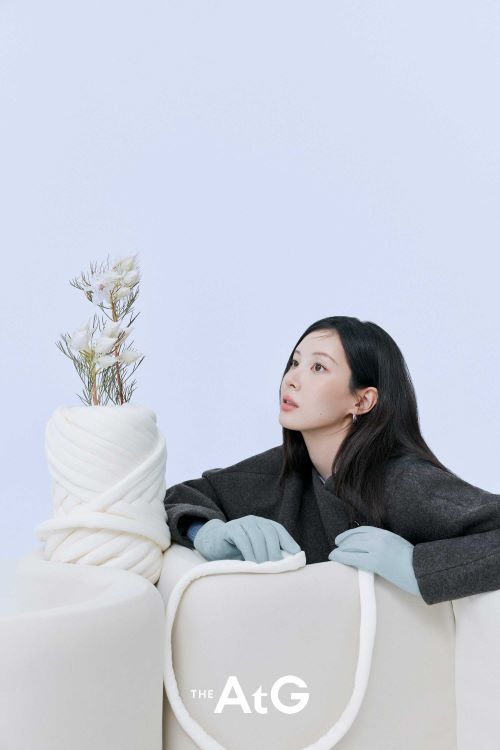 서현은 포근하고 클린한 무드를 기반으로 에센셜하지만 포인트가 있는 ‘더엣지’의 아이템을 완벽 소화했다.