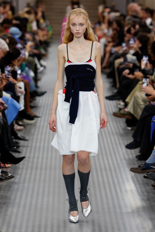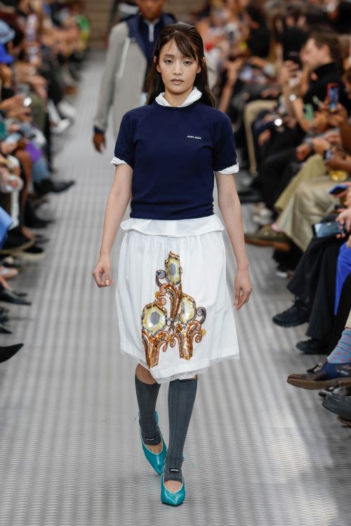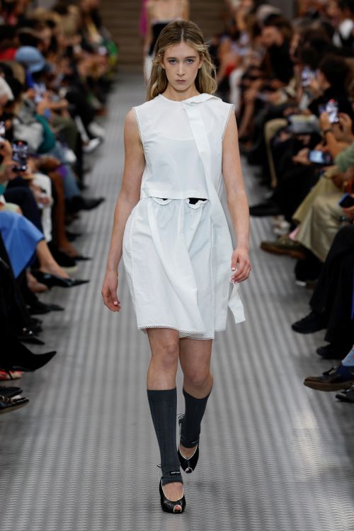 미우치아 프라다의 ‘미우미우’ 2025 봄/여름 컬렉션은 어린 시절 입던 순수하고 클래식한 형태의 옷을 다양한 연령대를 위해 새롭게 재해석했다.
