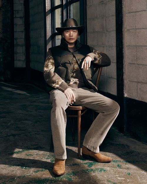 화보 속 이동휘는 스웨이드 배색 다운 베스트와 페어마일 니트 풀오버, 코듀로이 카고 팬츠와 함께 레트로 무드 속에서도 강렬한 남성미를 발산하는가 하면 베이직 스타일의 더블 롱코트를 완벽하게 소화하며 젠틀한 겨울 남자의 정석을 보여줬다. 자연스러운 그라데이션이 매력적인 니트 제품과 스트레이트 핏 청바지를 매치해 클래식하면서도 모던한 분위기를 연출했다.