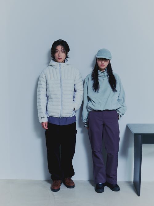 특히 글로시한 광택감의 하이넥 푸퍼 다운은 겨울 시즌 메인 아이템이다. 소매 부분의 지퍼 디테일로 두꺼운 이너를 입어도 지퍼를 열어 편안하게 착용이 가능하다. 밑단의 스트링 디테일로 바람을 막아줄 뿐만 아니라, 다운 프루프 가공 원단을 사용해서 충전재가 새어 나오지 않도록 만듦새를 단단히 했다.