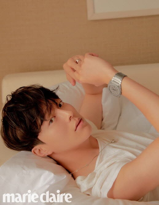 그는 화보에서 편안한 화이트 슬리브리스 룩에는 스틸 소재의 브레이슬릿 워치와 링 그리고 펜던트를, 세련된 화이트 자켓에는 짙은 네이비 컬러가 돋보이는 브론즈 소재 케이스의 워치와 뱅글을 매치하여 감각적인 패션 센스를 선보였다.