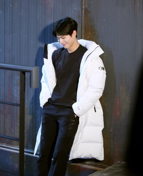 비하인드컷 속에서 박보검은 화사한 오렌지 컬러의 다운 자켓에 그레이 컬러 후드 티셔츠를 매치해 스포티하면서도 트렌디한 스트리트 아웃도어룩을 선보였다. 간절기 시즌부터 겨울까지 착용하기 좋은 플리스 자켓의 경우 플리스 자켓 만의 포근하면서도 편안한 느낌을 자연스럽게 표현해 내며 멋스러운 스타일을 연출했다.