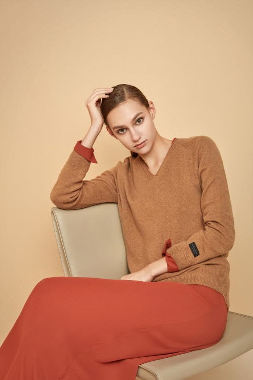 초가을에는 단독으로, 한겨울에는 이너로 오랜 시즌 함께할 수 있으며 V넥 디자인으로 목이 길고 날씬해 보인다. 베이직한 크림베이지, 멜란그레이, 카멜과 포인트 컬러 루비핑크, 바이올렛, 허니옐로우로 구성돼 취향대로 선택할 수 있다.