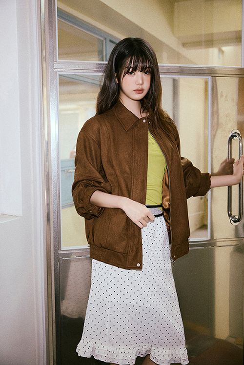 또한 부드러우면서도 탄탄한 텍스처가 매력적인 ‘스웨이드 블루종 재킷’은 자연스럽게 떨어지는 드롭 숄더와 세미 벌룬 라인으로 도회적인 무드를 강조했으며 간절기는 물론 늦가을까지 활용하기 좋다. 특히 장원영이 착용한 딥 브라운 컬러는 깊어지는 가을 분위기와 함께 장원영 특유의 무심한 듯 시크한 비주얼을 돋보이게 해준다.