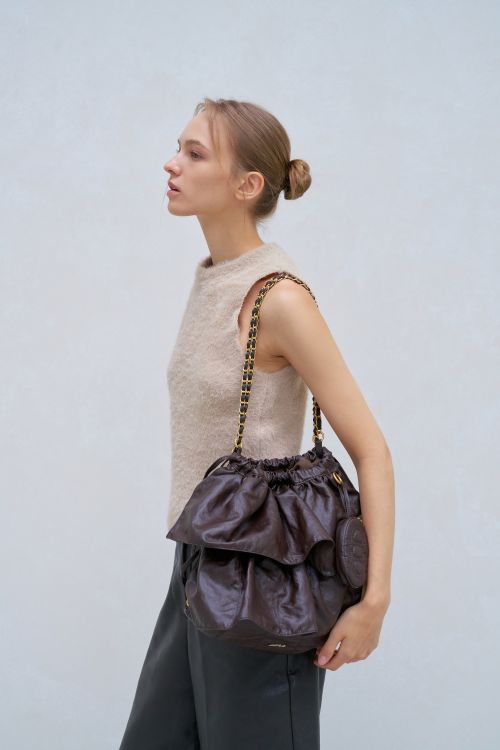 가죽 질감을 구현한 소재의 특성으로 색감도 깊어졌다. 세련된 분위기의 블랙과 ‘모카무스’ 컬러 트렌드를 반영한 브라운 두 가지 색상으로 출시했으며 체인 장식 또한 다양한 컬러로 확대해 취향별 선택의 폭을 넓혔다. 10월 초에는 프릴백의 미니 크로스백 스타일을 새롭게 출시하고, 10월 말에는 신규 컬러를 추가해 프릴백 라인업을 보다 다채롭게 구성할 예정이다.